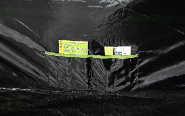 Extra starke Reißverschlüsse mit Reißverschluss Abdeckung. Die sehr stabilen 5mm Stahl- Erdnägel verbiegen sich auch bei hartem Untergrund nicht. Die Nähte sind mittels Nahtbandes wasserdicht versiegelt und gewähren eine bessere Naht- Reißfestigkeit. Kabeleingang mittels Reißverschlusses und Kabelführung für Beleuchtung. Abgedunkeltes Innenzelt mit Vario Vent Control System. 2 Moskitonetz- Eingänge halten lästige Plagegeister fern und kann bequem von innen je nach Klima variabel bedient werden. Mit einer Reißschluss- Trennwand lässt sich das Innenzelt in eine große Kabine oder 2 Schlafbereiche aufteilten. 5 Praktische Organizer und 5 Innenzelttaschen für Utensilien. 2 Lampenhalter für Campingleuchten runden den Komfort ab. Das Garda 5.0 bietet für 5 Personen mit Camping Ausrüstung ausreichend Platz. Bestens geeignet für den Camping Urlaub.